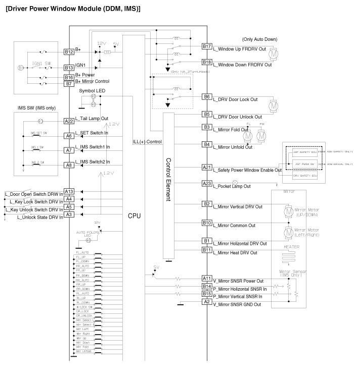 Kia Sedona: Power Door Mirror Switch Schematic Diagrams| Circuit Diagram |