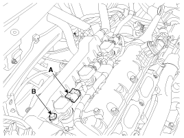 Remove the ignition coil after loosening the mounting bolt (B).